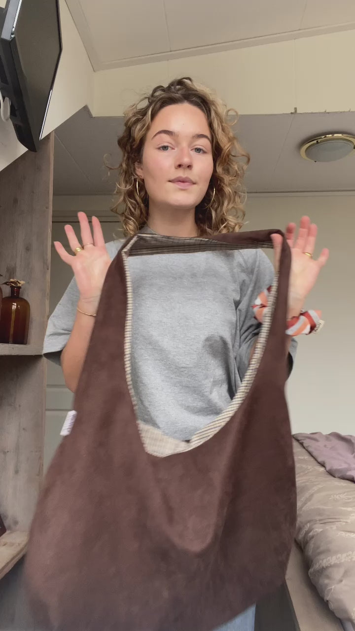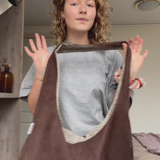 Reversible slouch bag - brown/checkered